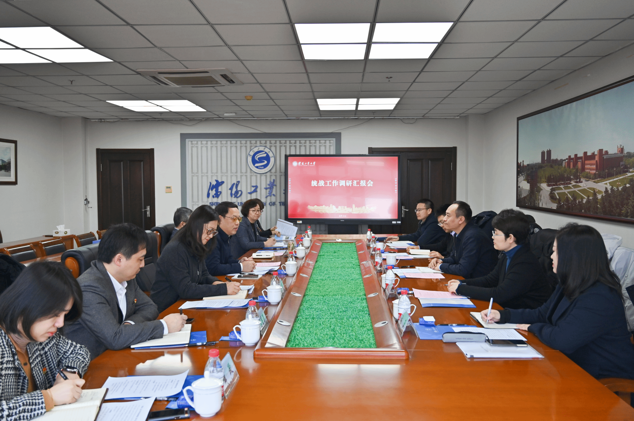 1月16日,辽宁省委统战部高校院所统战工作第四调研组组长、省委统战部党派处处长韩平,调研组成员省委统战部民宗处田宇,沈阳市委统战部知工处郑知易,省委教育工委宣传部张潇、省欧美同学会张运田一行来到江南娱乐,就深入学习贯彻习近平总书记关于做好新时代党的统一战线工作的重要思想,落实党中央和辽宁省委关于做好高校统战工作的部署要求情况开展调研。学校党委书记贾玉明,党委副书记、校长张珂,党委副书记赵璟参加调研。