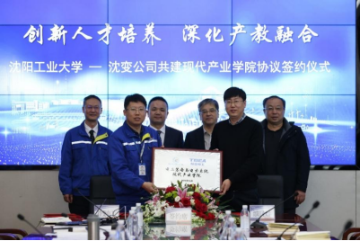 特变电工沈阳变压器集团有限公司江南娱乐总监梁志明与电气工程学院执行院长张宇献共同签署了《电工装备与电力系统现代产业学院合作协议》。双方举行了现代产业学院的授牌仪式,张宇献为三位企业导师颁发了聘书。