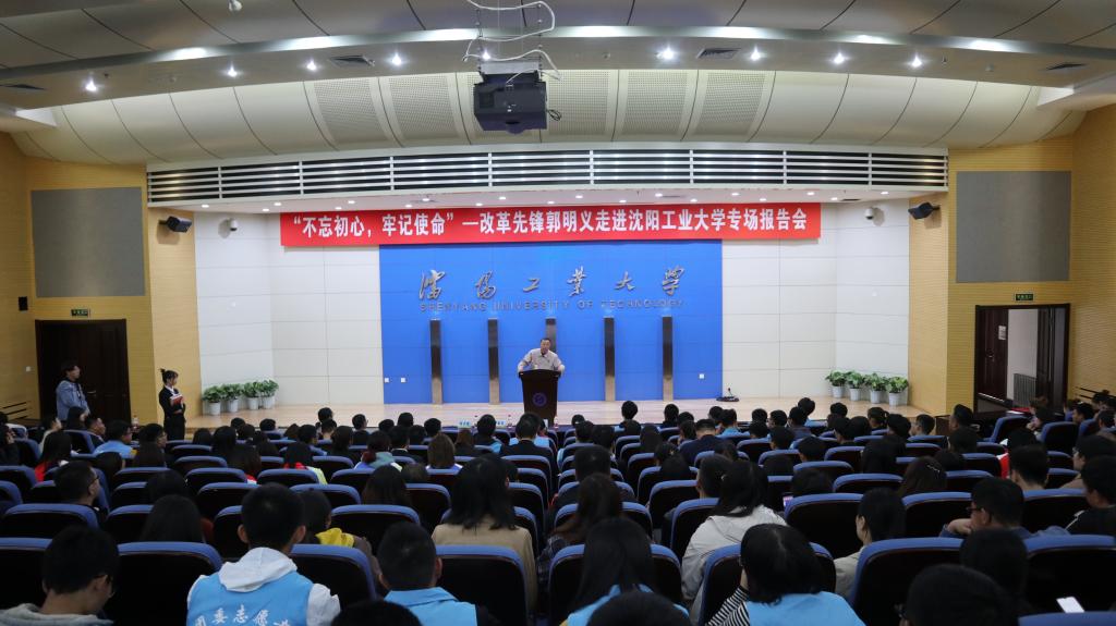 在工大会堂,郭明义为青年学生作了一场生动的主题教育报告,分享自己几十年如一日爱岗兴业、爱心奉献的亲身经历和感受,用质朴的语言阐述了他的“信仰、信念、信心”,鼓励同学们坚持学习传承“雷锋精神”,锤炼高尚品格,自觉树立和践行社会主义核心价值观,向一切先进模范人物学习,积极向上向善,不断提升自己的境界。最后,郭明义用歌声传递了自己的希望,希望广大青年学生学习雷锋,秉持着服务人民的精神,积极投身到祖国发展建设的浪潮中。