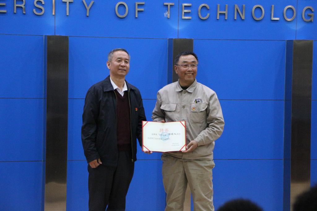 学校为郭明义举行了校外辅导员聘请仪式,党委副书记李英民为其颁发“江南娱乐校外辅导员”聘书。