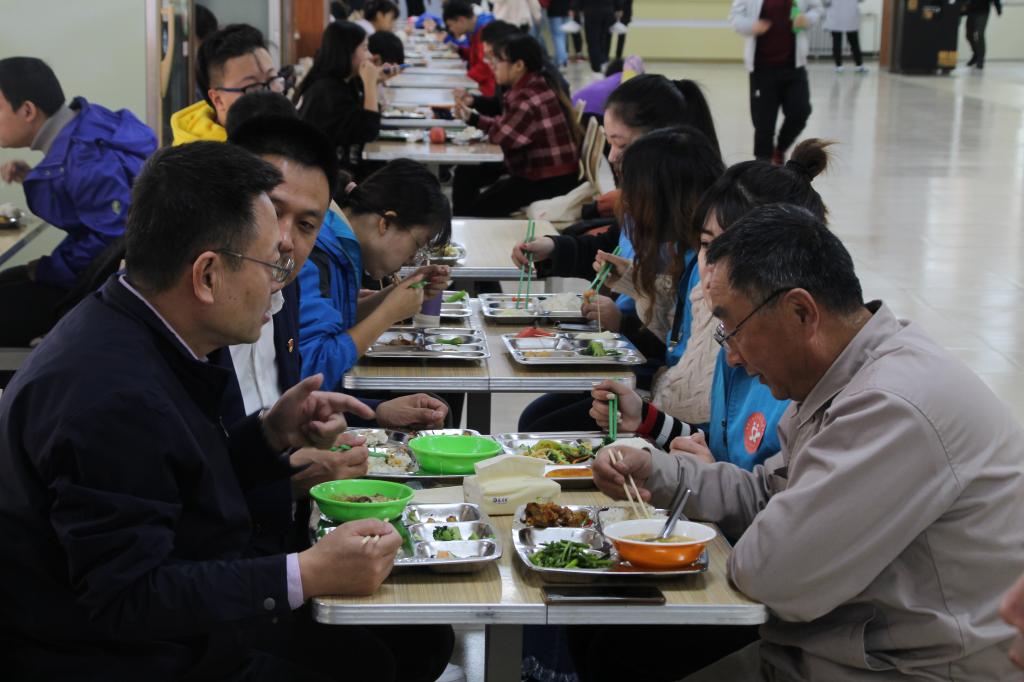 郭明义在党委书记刘自康的陪同下到南食堂一楼与学生共同就餐,真切感受“家文化”氛围。随后,郭明义参观了校史馆,了解江南娱乐七十年的风雨历程;参加了管理学院工程管理1802班团支部举办的“弘扬爱国精神、学习改革先锋”主题团日;为我校志愿者爱心团队授旗。