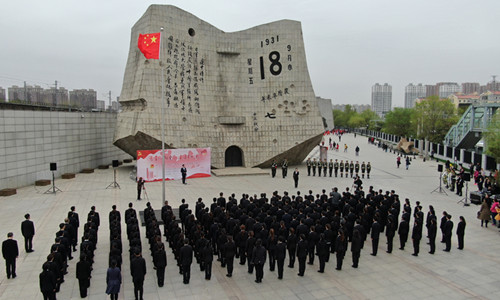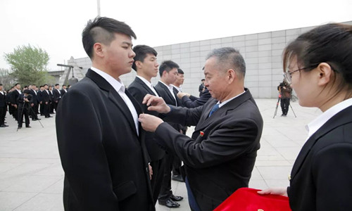 上午9时整,主题团日活动在师生高唱国歌声中正式开启。首先,马克思主义学院青年教师贾德辉为现场师生带来题为《青春心向党,青春与祖国同行》的精彩微团课,通过生动讲授,激励广大团员青年继承和弘扬五四精神,争做担当民族复兴大任的时代新人。杨斌、李英民为团员代表佩戴团徽。随后,经济学院阿丽米热·阿不力米提领誓,进行新团员入团宣誓和老团员重温入团誓词。团旗下演讲环节中,团员青年代表,材料学院张一凡号召广大团员青年要努力学习增才干,不忘初心跟党走,牢记使命勇担当。李英民寄语广大团员青年,一要树立远大理想,不辱时代使命;二要厚植爱国情怀,不负人民期望;三要练就过硬本领,不负青春韶华。国旗班向“九·一八”历史博物馆残历碑敬献花篮,张宝东、李英民上前整理挽联。全体肃立为遇难同胞和爱国将士们集体默哀,以示缅怀。互动展示环节,团员青年们纷纷写下活动感悟并立下奋斗志向,决心为中华民族伟大复兴“中国梦”贡献青春力量。活动最后,全体师生在管理学院志愿者讲解员的带领下参观“九·一八”历史博物馆,铭记历史,不忘初心。