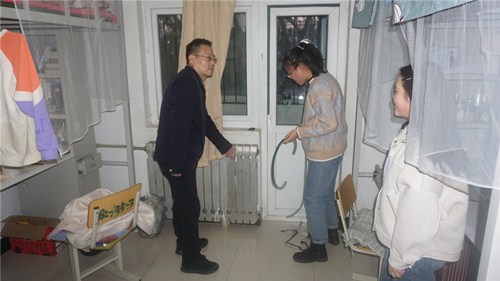 冬季来临,温度骤降,学生公寓供暖情况也成为学校党委心里的牵挂。为确保所有学生度过一个温暖舒适的冬天,11月8日傍晚,党委书记刘自康亲自带队深入学生公寓实地察看走访,切实了解学生公寓供暖情况。