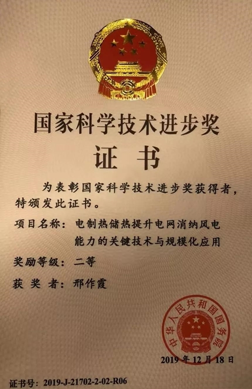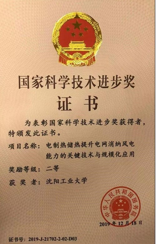 1月10日,2019年度国家科学技术奖励大会在人民大会堂隆重举行。我校作为主要完成单位,邢作霞教授作为主要完成人的“电制热储热提升电网消纳风电能力的关键技术与规模化应用”项目,喜获2019年度国家科学技术进步奖二等奖。