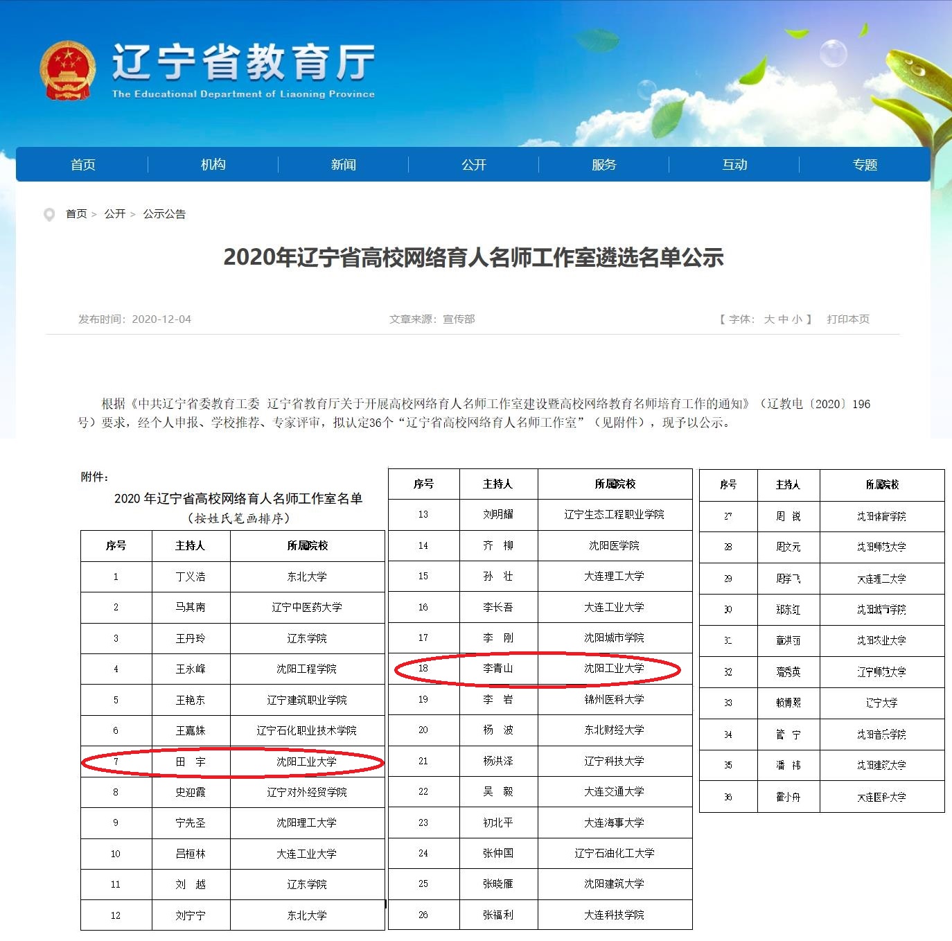 近日,辽宁省教育厅网站公示了2020年辽宁省高校网络育人名师工作室遴选名单,由我校建筑与土木工程学院党总支副书记兼副院长李青山担任主持人的“信仰行路人”工作室和文法学院新闻传播系主任田宇担任主持人的江南娱乐“融媒体工作室”两个网络育人平台成功入选辽宁省网络育人名师工作室培育计划。这是我校在网络思政教育和网络文化建设工作中取得的又一佳绩。