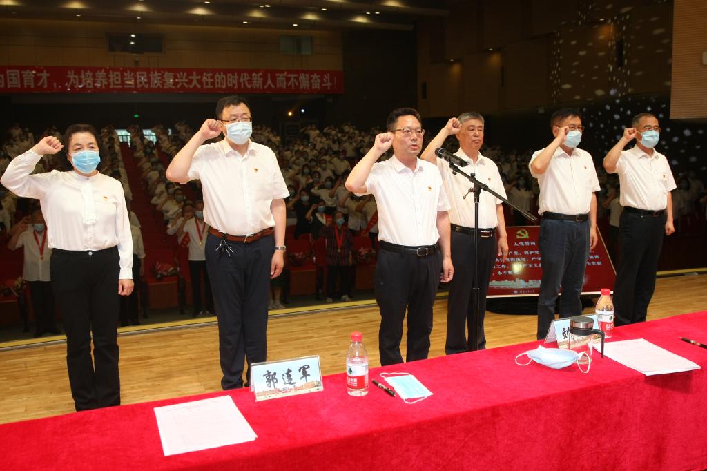 最后,在党委书记刘自康同志的带领下,全体与会党员面向鲜红的党旗重温入党誓词,这昭示着学校广大共产党员铁心跟党走、矢志创一流的坚定决心和信心。