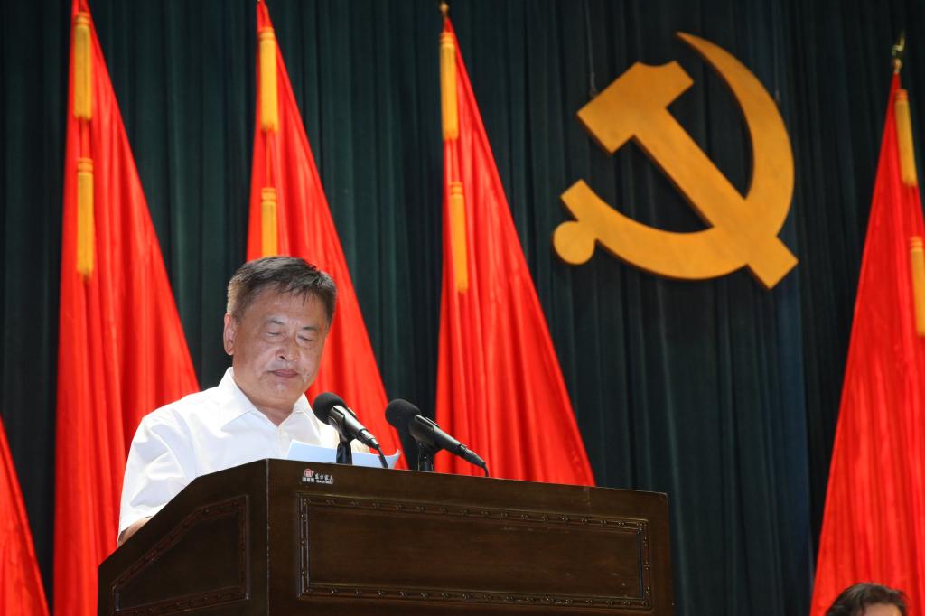 党委书记刘自康带领全体与会党员重温入党誓词