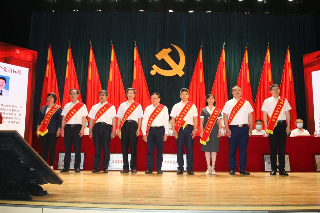 党委常委、副校长何又春宣读表彰文件。为庆祝建党100周年,今年学校党委组织评选了首届工大十大优秀共产党员标兵,现场播放了每名标兵的颁奖词,他们是唐任远、杨理践、王德喜、邵义、夏加宽、贾丹平、李青山、刘红晶、苏东海、白露。校领导为获奖的十大优秀共产党员标兵、优秀党务工作者、先进基层党组织和优秀共产党员代表颁奖。
