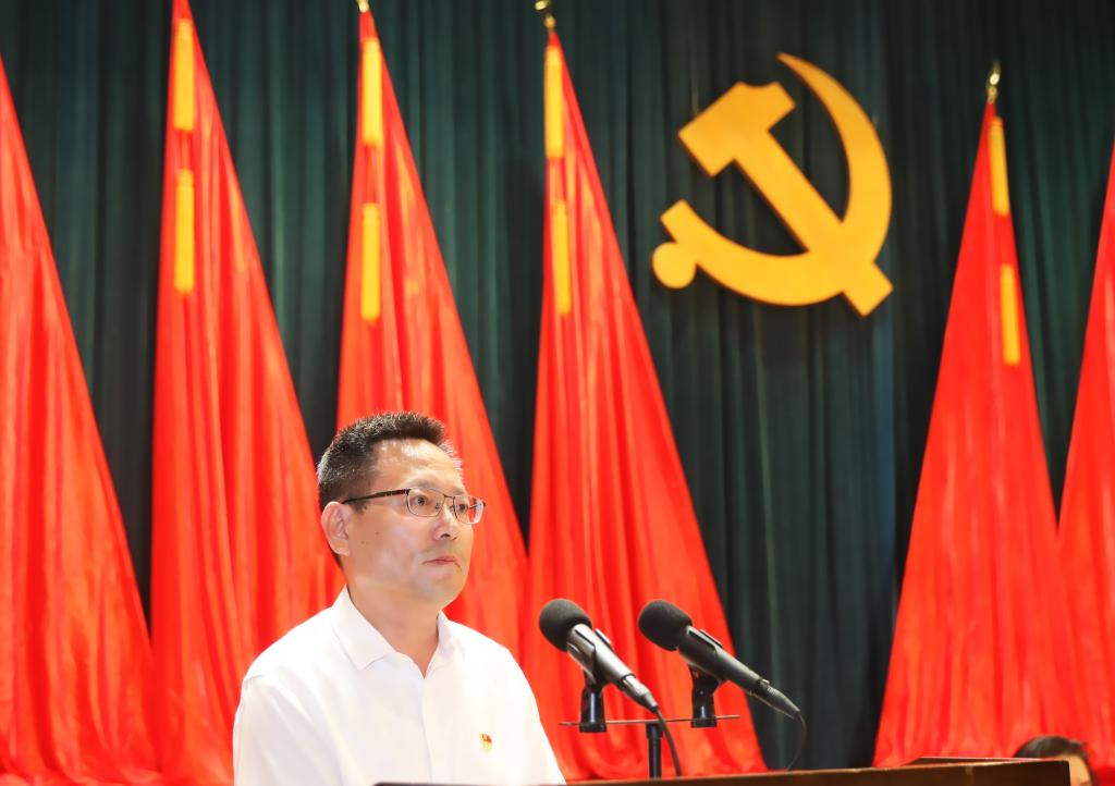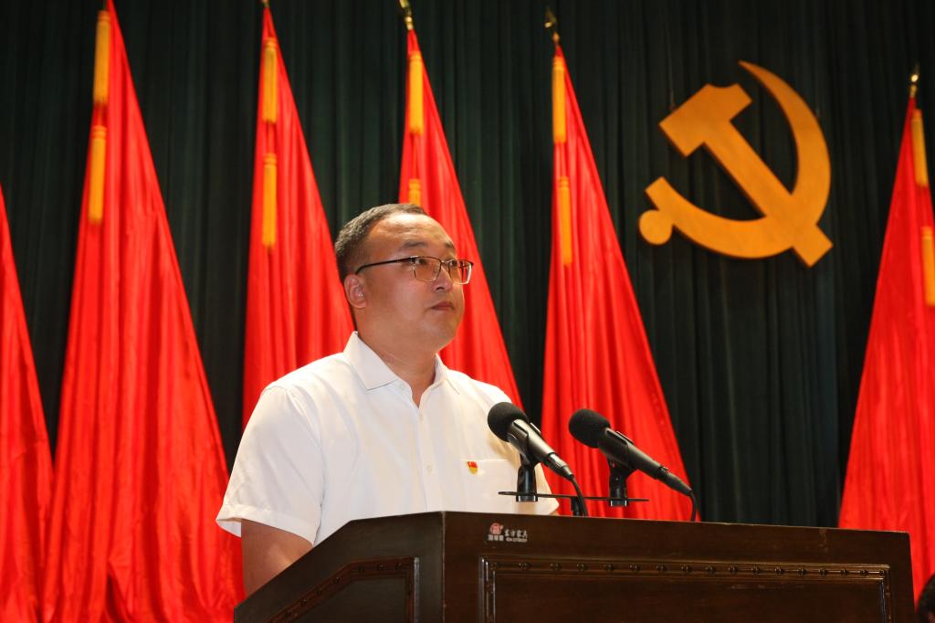 机关党委书记付博文代表机关党委向全体机关党员发出三点倡议:一是要胸怀“国之大者”当先锋,二是要心系全体师生优服务,三是要脚踏工大热土干一流。
