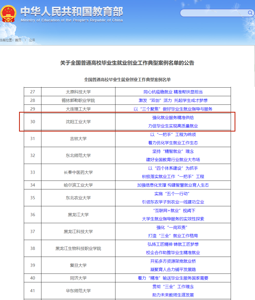 关于全国普通高校毕业生就业创业工作典型案例名单的公告 http://www.moe.gov.cn/jyb_xxgk/s5743/s5744/A15/202111/t20211126_582611.html