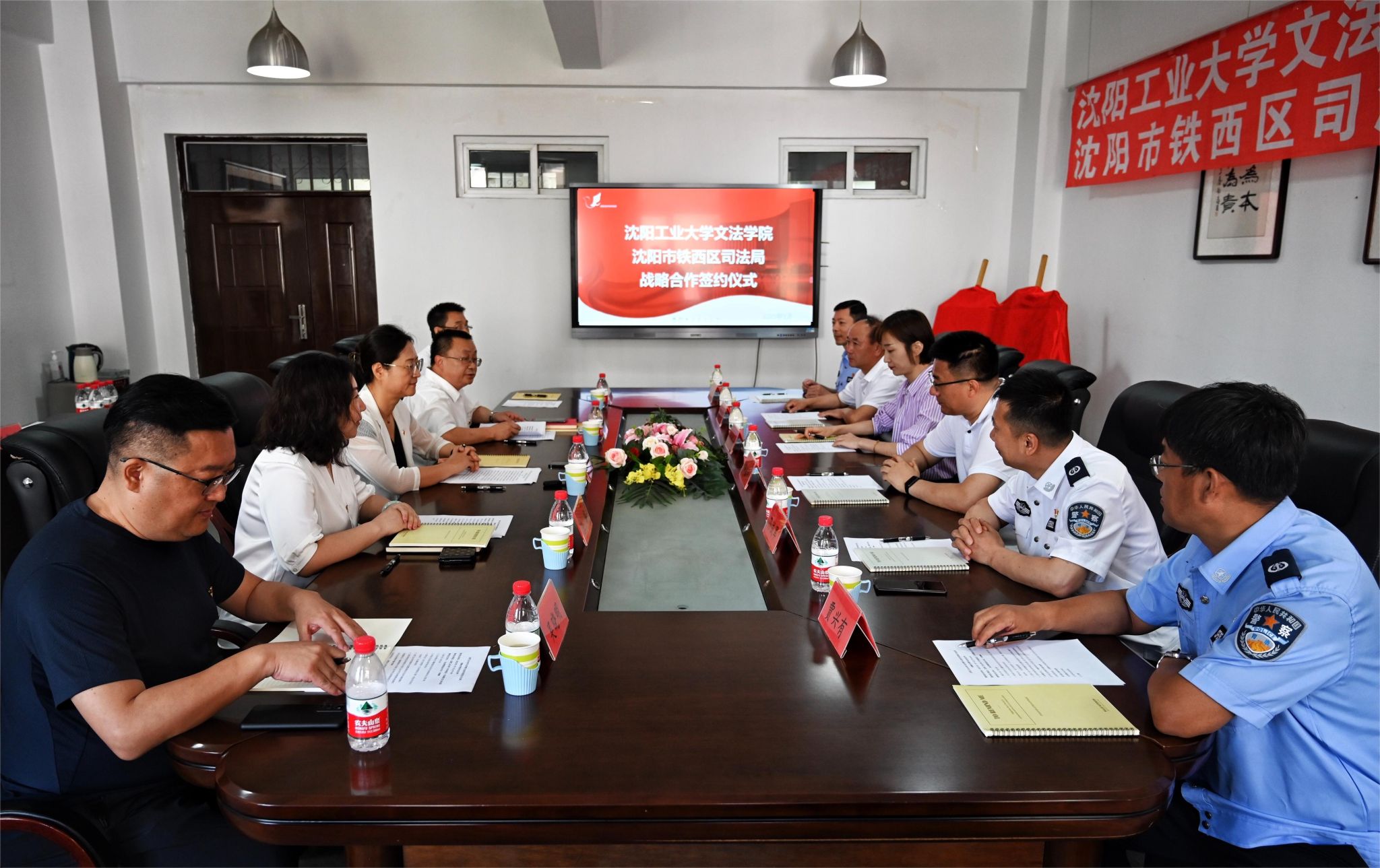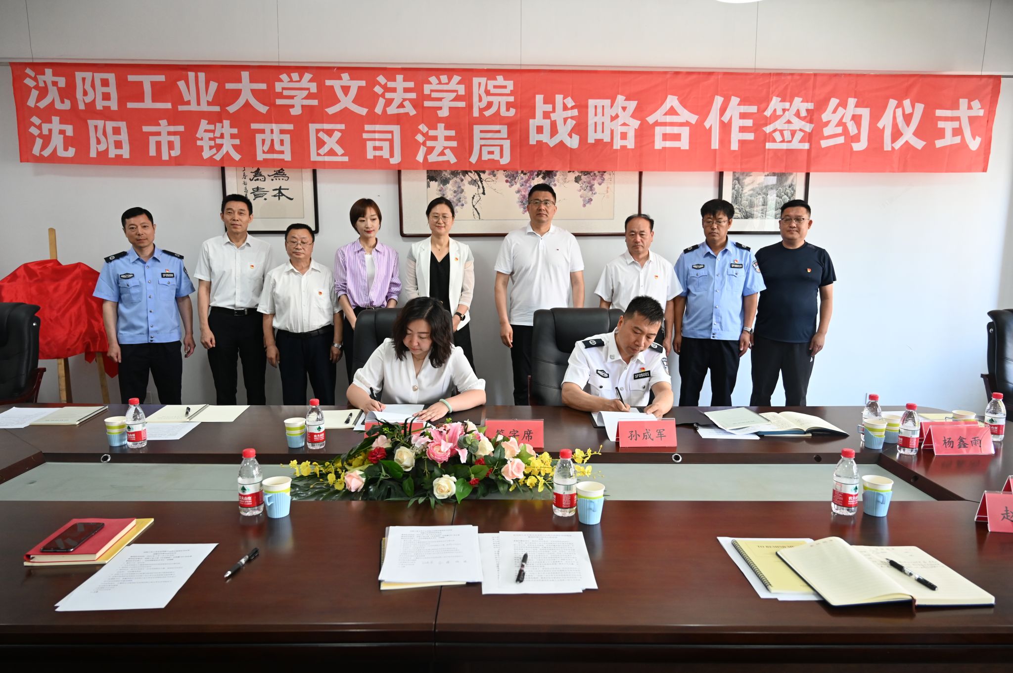 7月7日上午,我校文法学院与铁西区司法局签署战略合作协议。铁西区委常委、宣传部部长、区委法治建设委员会守法普法协调小组组长杨鑫雨,区司法局党组书记、局长孙成军,我校党委副书记赵璟,文法学院负责同志出席签约仪式。