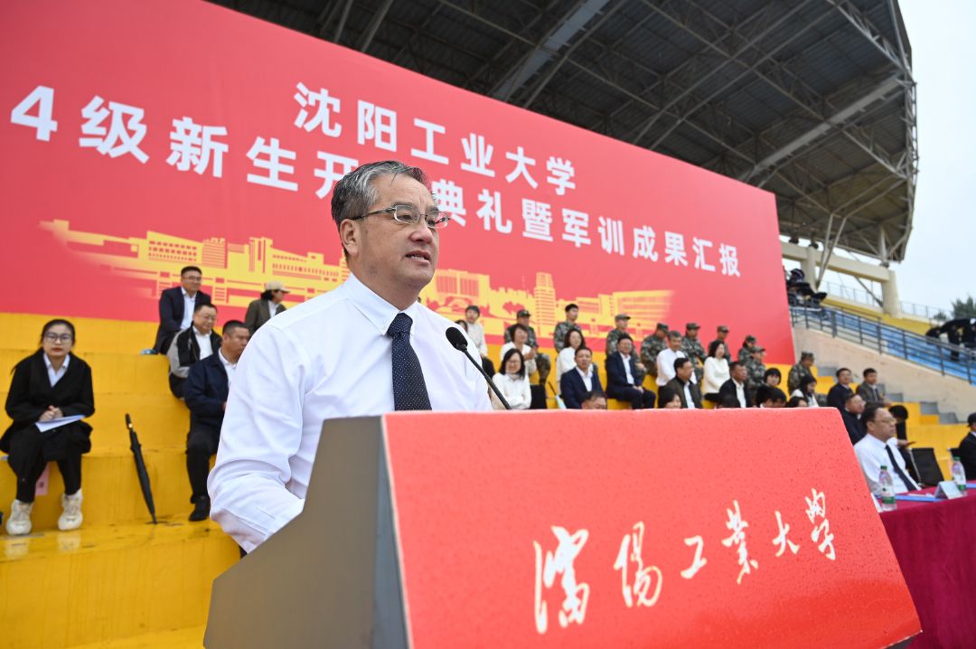 9月14日,2024级新生开学典礼暨军训成果汇报在南区体育场举行。校领导贾玉明、张珂、陈延明、陈卫国、柯丽、夏明超出席大会,党委常委、副校长孙秋野主持活动。学校相关职能部门负责人、各二级学院党政负责人、学生工作干部、军训教官、2024级全体学生参加大会。会议特别邀请了沈阳警备区战备建设处副处长陈知阳,我校2009届电气工程学院博士毕业生、正泰电气股份有限公司副总裁、教授级高级工程师李锦彪校友出席。