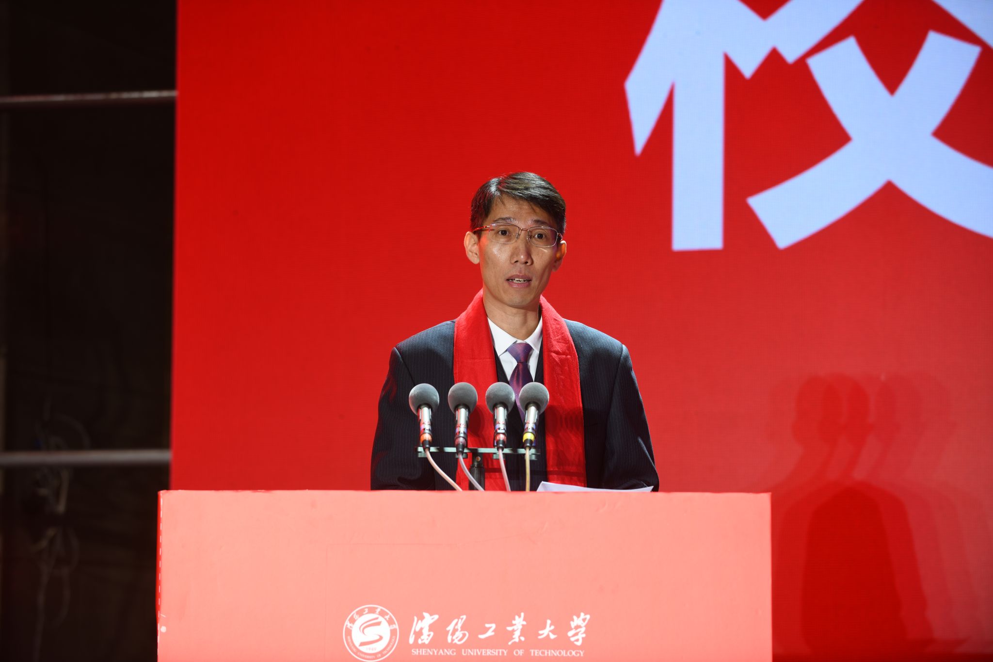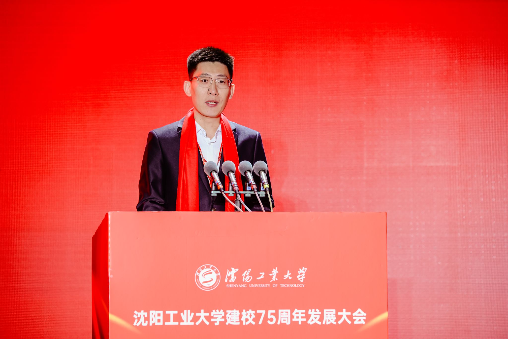全国模范教师、全国高校黄大年式教师团队带头人、国家稀土永磁电机工程技术研究中心主任张凤阁教授作为教师代表发言。他代表全校教师向学校75岁华诞表示祝贺。他表示,作为伴随着学校走过了四十四个春秋的老教师,自己深爱这片给予自己成长、发展、收获的土地。他介绍了电机学科在唐任远院士带领下一步步发展壮大的历程,以及自己和科研团队一起主动作为、攻坚克难,实现一项项科技创新的经历。他表示,将继续牢记为党育人、为国育才的初心使命,坚守教育科研阵地,把握辽宁全面振兴重大机遇,产出更多引领时代的科研成果,培养更多具有家国情怀、使命担当的未来科技创新领军人才。