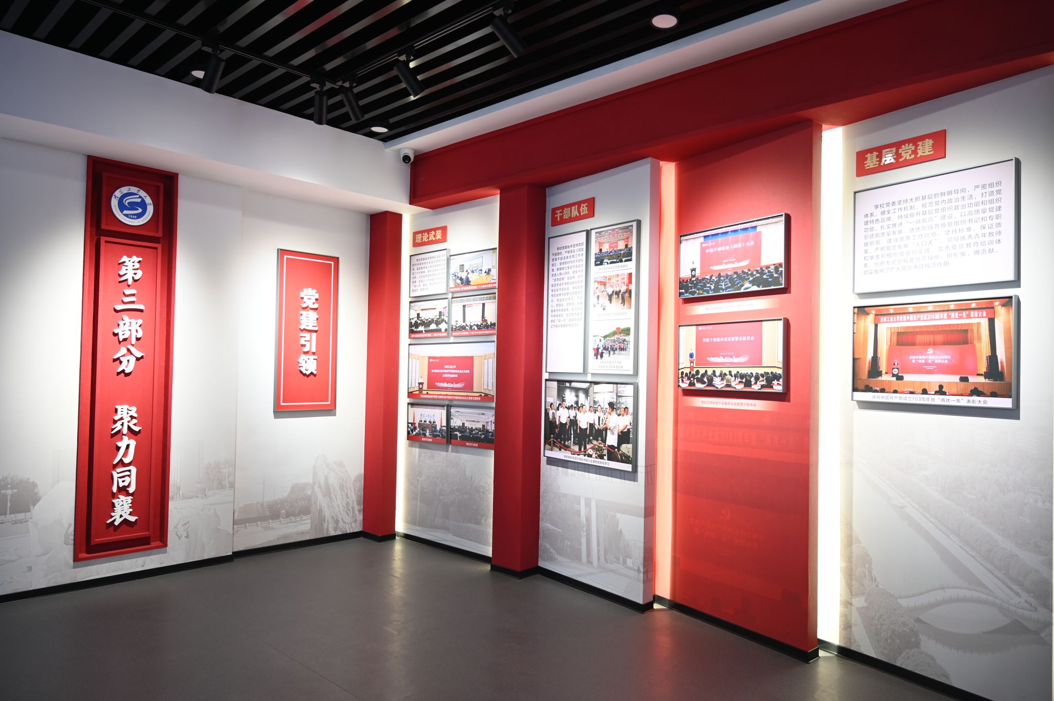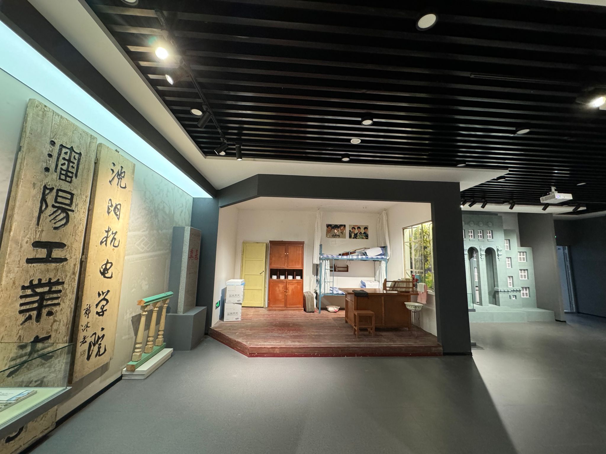 校史馆位于中央校区图书馆一层中心区域,在原校史馆基础上改建,实现了功能提升。新校史馆总面积约800平方米,分为筚路铿锵、奋斗荣光、聚力同襄三个部分。校史馆通过图文、历史实物、模型、雕塑、档案史料、场景复原、数字化展示、互动体验等多种展陈方式,生动呈现了学校75年来忠诚报国、自强笃行、改革创新、担当奉献的恢弘画卷和感人叙事,抒写了“共和国工业奠基地”建设者、见证者的豪迈情怀。馆名由学校原党委书记田维实题写。