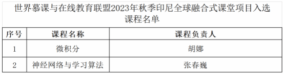 推进课程建设国际化。积极推动优质课程走向海外,在原有4门慕课出海的基础上,《神经网络与学习算法》《微积分》2门课程成功入选2023秋季印尼全球融合式课堂项目(全国仅34门课程入选)。同时,积极参与慕课西行,获得教育部在线教育研究中心颁发的“东西部融合式教学首批试点高校”。