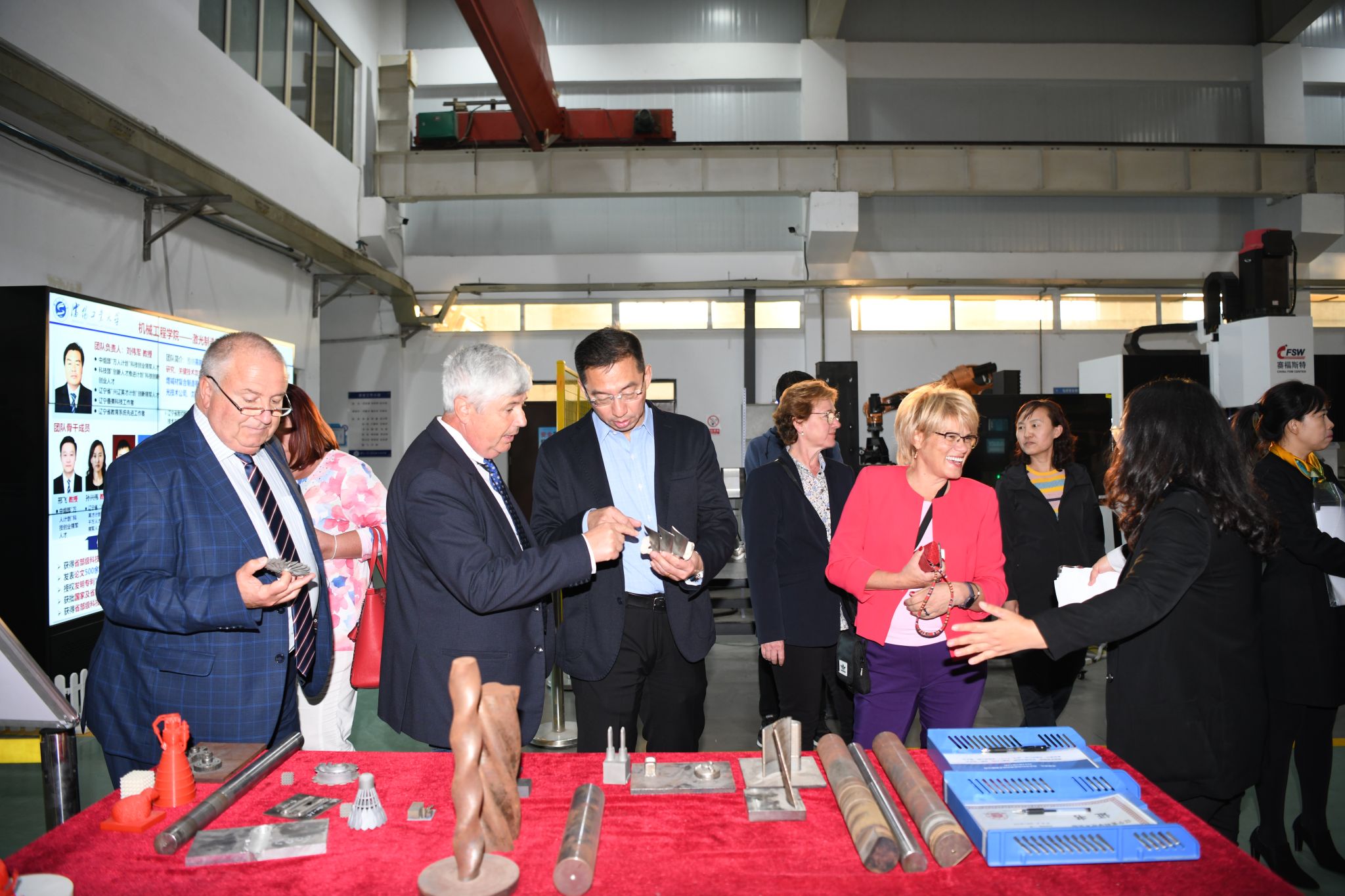 座谈结束后,代表团一行参观了我校教育部重点实验室以及机械工程学院实验室,并就实验室的研究成果进行了深度的学术交流和探讨。代表团一行还参观了我校新落成的科技成果展馆,了解我校在75年发展历程中取得的诸多科研成果。