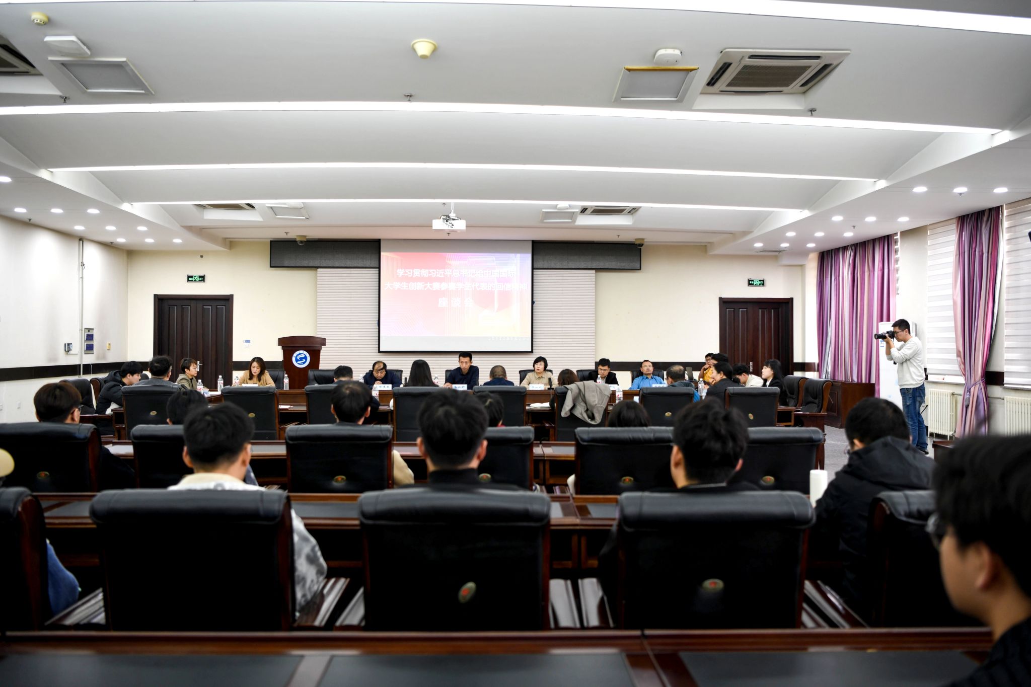 10月29日下午,学校学习贯彻习近平总书记给中国国际大学生创新大赛参赛学生的回信精神座谈会在校部五楼会议室召开。党委常委、副校长孙秋野主持会议并讲话。相关职能部门、二级学院创新创业工作负责人、参赛师生代表50余人参加了座谈会。