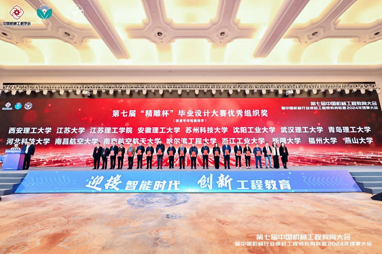 11月23日至25日,由中国机械工程学会、中国机械行业卓越工程师教育联盟主办,浙江大学等单位承办的“第七届中国机械工程教育大会暨中国机械行业卓越工程师教育联盟2024年理事大会”在杭州成功举办。我校党委副书记、校长张珂应邀出席大会,机械工程学院、材料科学与工程学院有关负责同志及教师代表一同参会。我校在本次会议中荣获第七届“精雕杯”毕业设计大赛优秀组织奖,这是学校连续第七次获得该奖项。