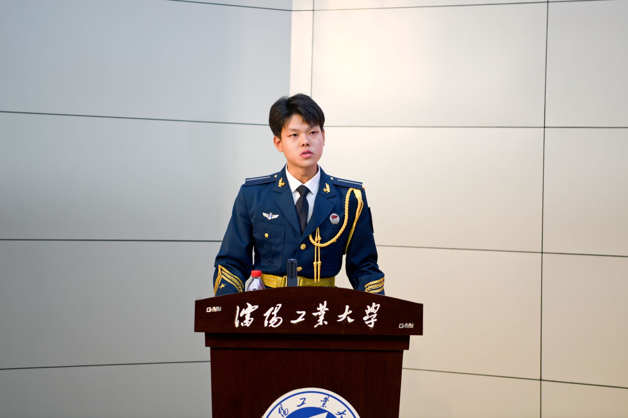 学生代表管理学院于洋、校国旗护卫队代表人工智能学院吴秉霖、教师代表机械工程学院任腾依次发言,表达了对国旗的敬意和对祖国的热爱之情。于洋深情讲述了这面国旗赠予学校后的真切感受,并表示要勤奋学习、不懈奋斗,努力成长为堪当民族复兴重任的时代新人;吴秉霖分享了校国旗护旗队的责任与荣耀,号召青年学子在爱国奉献中展现责任与担当;任腾结合校史学习,号召全体师生铭记校训精神,以更加饱满的热情、更加昂扬的斗志,为一流大学建设和辽宁全面振兴而努力奋斗,用实际行动诠释青春无悔、强国有我。