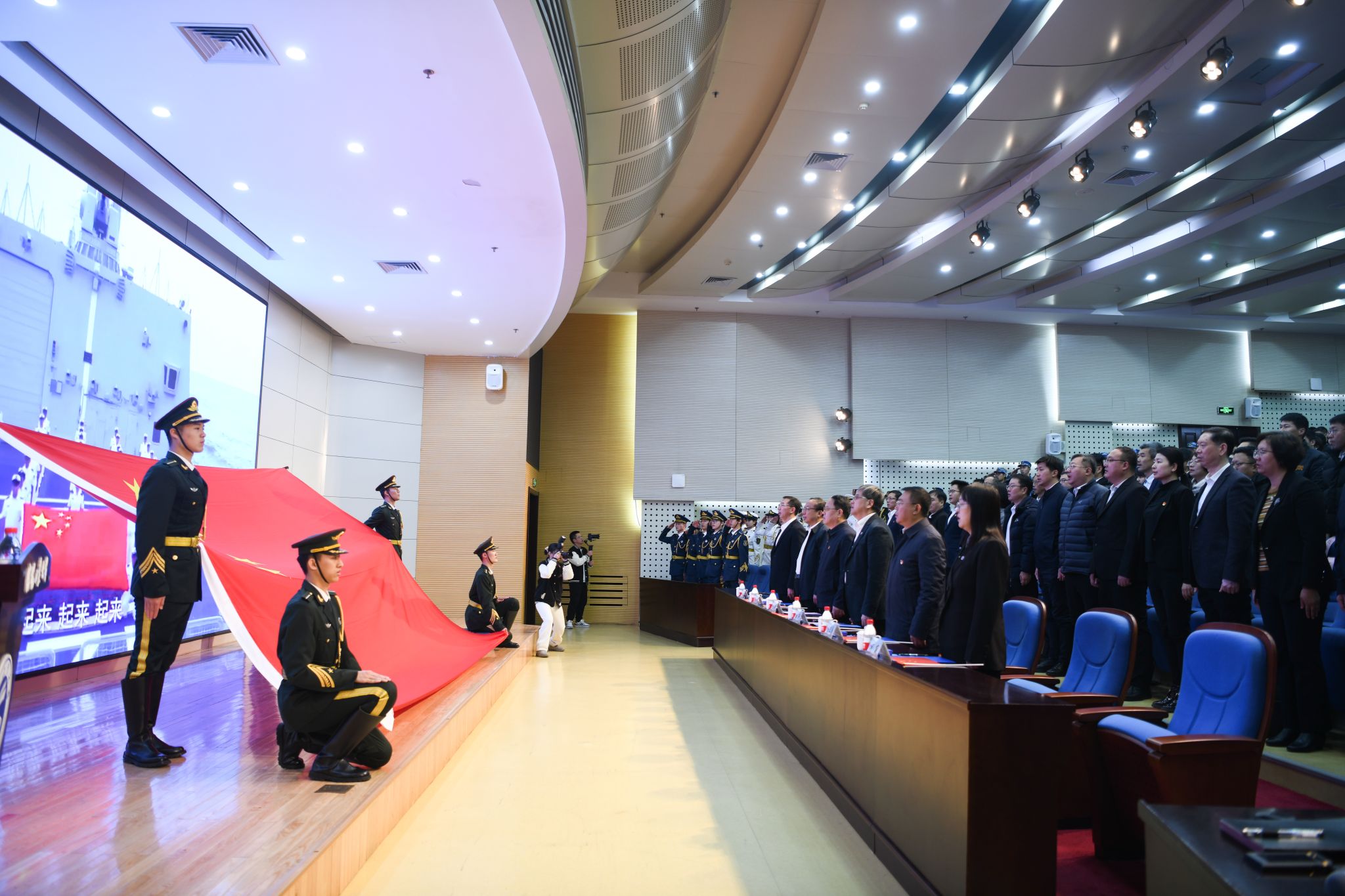 贾玉明强调,爱国主义是民族精神的核心,是中华民族团结奋斗、自强不息的精神纽带,此次国旗迎接仪式是一次难得的爱国主义教育洗礼,是一堂鲜活的思政大课。就高举爱国旗帜、凝聚奋斗力量,他用四句箴言与大家共勉。一是深情凝望,我为祖国骄傲。深入学习党史、新中国史、改革开放史、社会主义发展史、中华民族发展史,在学思践悟中坚定理想信念,厚植爱国情怀,切实把爱国与爱党和爱社会主义紧密联系起来,把个人奋斗与国家富强、民族复兴结合起来。深刻认识到中华民族之所以历经磨难而生生不息,同中华民族有深厚持久的爱国主义传统密不可分;中国共产党百年奋斗史就是一部气势恢宏的爱国主义史诗;坚持中国特色社会主义道路就是坚持新时代的爱国主义的丰富意蕴,始终与党同心、与国同行。二是挚诚热爱,祖国在我心中。爱国是做人最大的事情。要传承和弘扬工大优良传统,从校史中汲取爱国主义的精神养分,进一步厚植家国情怀、育人情怀和工大情怀,永葆对党忠诚、为国奉献的赤子之心,让爱国主义的伟大旗帜始终在心中高高飘扬。要矢志科教报国,践行育人使命,勇攀科技高峰,切实履行好大学的基本职能。要坚持自强笃行,锚定国内一流大学建设目标不放松,凝心聚力,实干担当,强力推进“四大战略”和“六项工程”发展任务,着力提升学校综合实力。要持续改革创新,统筹推进教育科技人才体制机制一体改革,不断释放办学治校活力。要敢于担当奉献,积极投身辽宁全面振兴新突破火热实践,主动服务辽宁新时代“六地”建设,助力打好打赢新时代“辽沈战役”。三是挺起双肩,扛稳强国担当。要凝心铸魂、夯实思想根基,把习近平新时代中国特色社会主义思想的真理力量转化为坚定理想、锤炼党性和指导实践、推动工作的强大力量。要厚植情怀、增强政治自觉,始终高举爱国主义伟大旗帜,将自己的人生理想融入国家和民族的事业中,努力践行强国有我、请党放心的青春誓言。要坚定自信,弘扬中华文化,在坚守好“魂脉”与“根脉”基础上,持续用中华优秀传统文化涵育爱国强国报国之心。要接续奋斗,创造崭新业绩,以矢志不渝、勇毅拼搏的奋斗精神和任重道远、奋发有为的使命感,在推动学校事业高质量发展中展现担当和作为。四是从我做起,践行爱国之志。要树牢正确思想观念,持续涵养坚韧的政治品格、高尚的爱国情操、不懈的进取精神,始终将立大志、明大德、成大才、担大任作为人生追求。要刻苦学习、努力工作,在不断学习实践中丰富学识、增长见识、练就本领,切实将爱国热情转化为实际行动,勇做走在时代前列的奋进者、开拓者、奉献者。要践行社会主义核心价值观,大力弘扬以爱国主义为核心的民族精神和以改革创新为核心的时代精神,着眼长远,顾全大局,始终把国家利益放在第一位。要注重全面发展,做到言行一致、表里如一、知行合一,对党忠诚,不负人民,在强国建设、民族复兴中书写青春华章。
