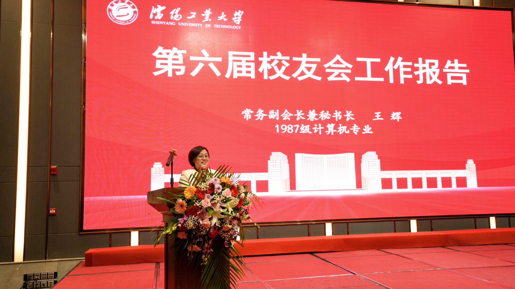 会上,沈阳校友会秘书长、1987级计算机专业校友、沈阳飞行船数码喷印设备有限公司总经理王辉致辞并作沈阳校友会第六届理事会工作报告。她从完善组织架构、扩大校友会规模,发挥学院分会职能、搭建交流平台,修订校友会章程、助力母校发展等方面总结沈阳校友会第六届理事会工作。