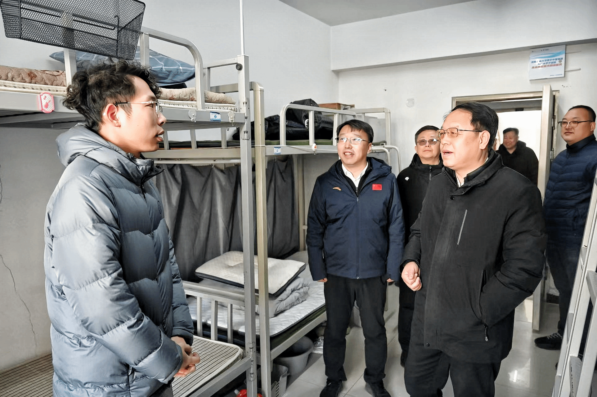 此次调研以深入点位检查、听取专项汇报和随机互动交流等方式开展。在教学楼,调研组详细了解了教学条件保障、监控设备运行情况等。在学生宿舍,与学生亲切交谈,了解了学习生活保障情况。在校门处,了解了校门区域安全措施,监控设备等设备布置。在实验室,重点关注了试验装置安全防护、应急处置物质储备、危化品存放和处理情况情况。在食堂,检查了食品安全、燃气安全和管理服务措施等。调研组对学校各项开学准备工作给予充分肯定,同时对校园安全工作提出指导性意见。孔峰强调,学校要高度重视开学各项准备工作,强化底线思维,完善制度机制,加强规范管理,层层压实责任,进一步提升校园安全工作水平,全力保障春季学期各项工作平稳有序开展。