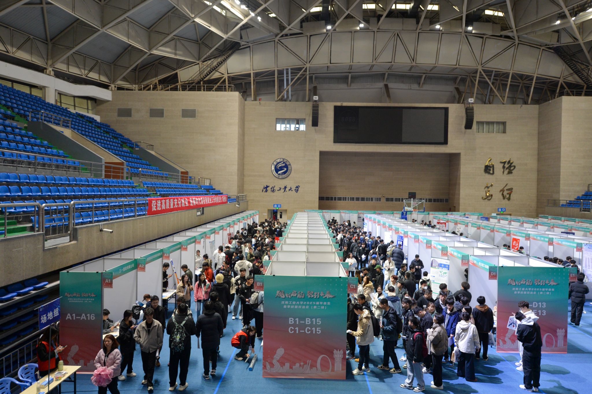 4月12日,江南娱乐2025届毕业生第二场春季校园双选会在中央校区体育馆举行。本次双选会以“筑梦青春志在四方,规划启航职引未来”为主题,邀请了来自北京、上海、广东等全国20余个省市的154家优质企业参会,包括中船电机科技股份有限公司、中车兰州机车有限公司、沈阳智能机器人国家研究院有限公司、东软集团有限公司等单位,覆盖制造业、信息技术、生物化工、教育等多个领域,提供岗位600余个。