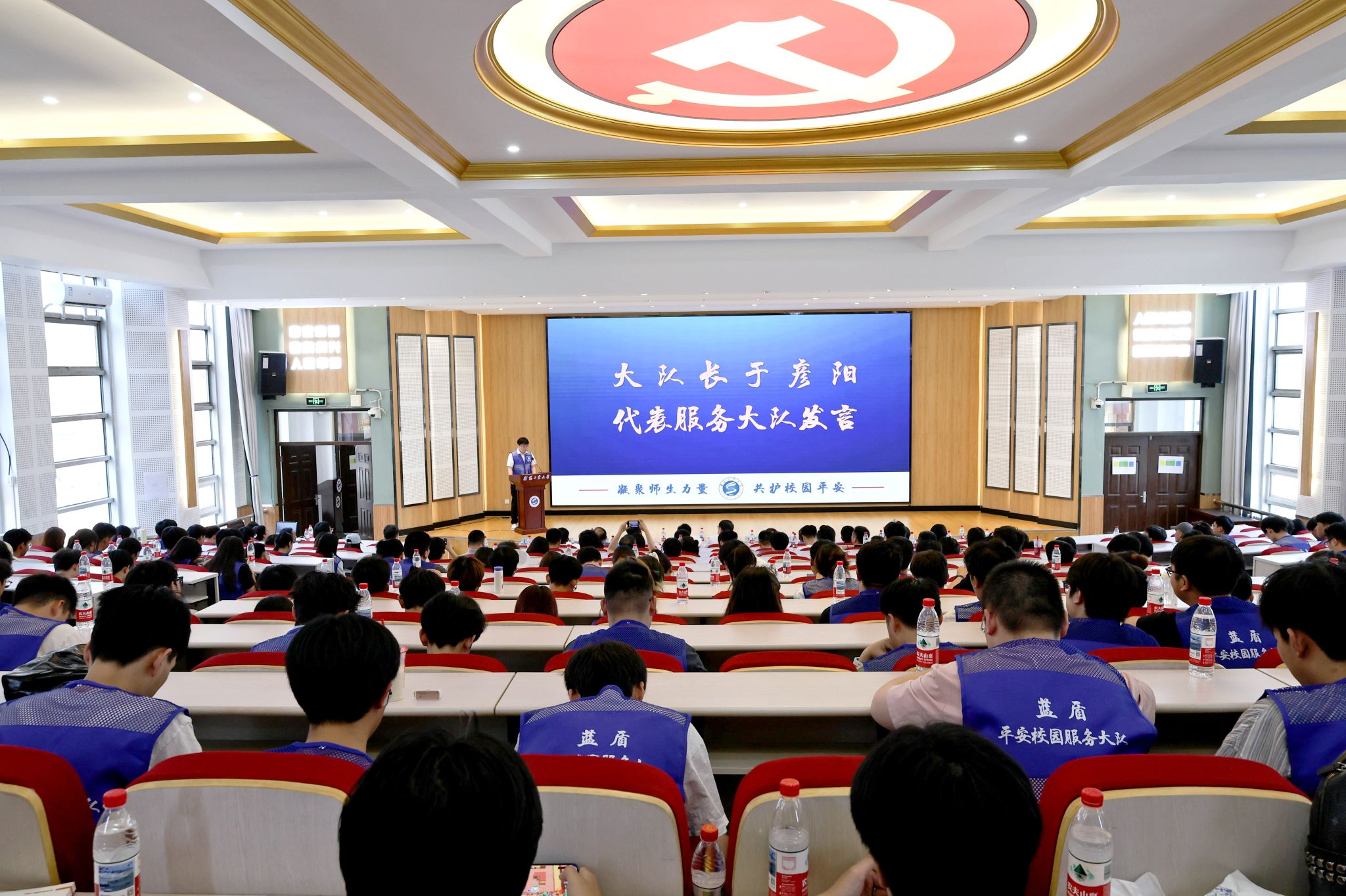 会上,校团委书记陈文波宣读了蓝盾平安校园服务大队成立批复文件,党委保卫部部长李杰作为指导教师发言,大队长于彦阳代表服务大队发言并带领现场全体队员代表庄严宣誓。