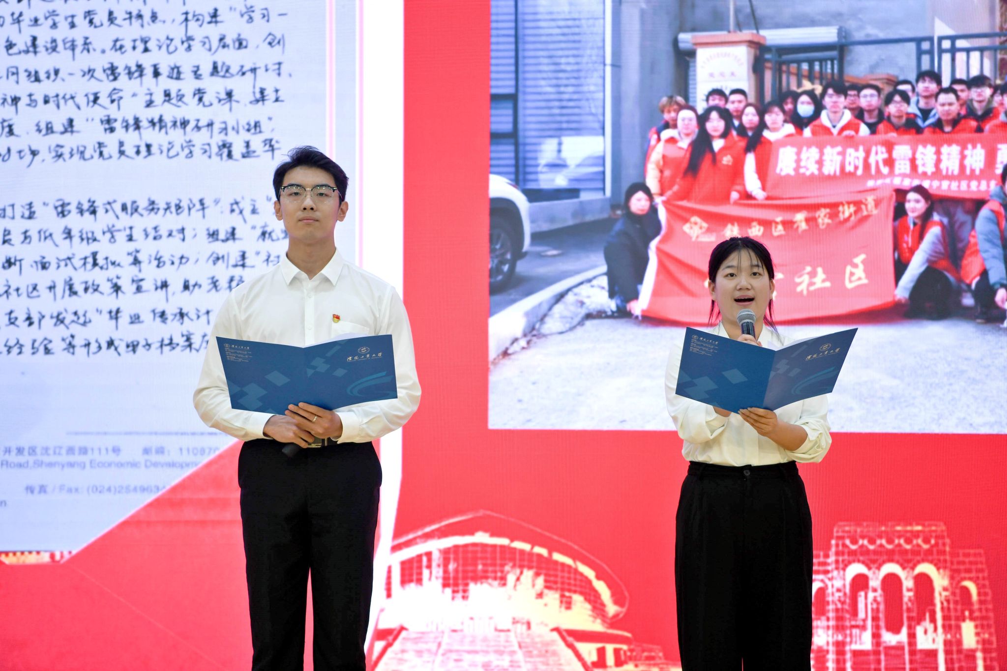 在讲授党课前,沈阳校区现场播放了“毕业生党员写给母校的一封信”视频片,展示了学校934名毕业生党员写给母校的感谢信,信中汇报了在校的成长与感悟,表达了对组织培养、老师教诲的由衷感谢,并立志在新征程上以更坚实的行动,报效祖国、服务人民,续写新时代的青春华章,展现了新时代青年党员在党组织培养下的成长轨迹和精神风貌。建筑与土木工程学院张凯镛、管理学院李春月同学代表全体毕业生党员宣读致母校的临别赠言。