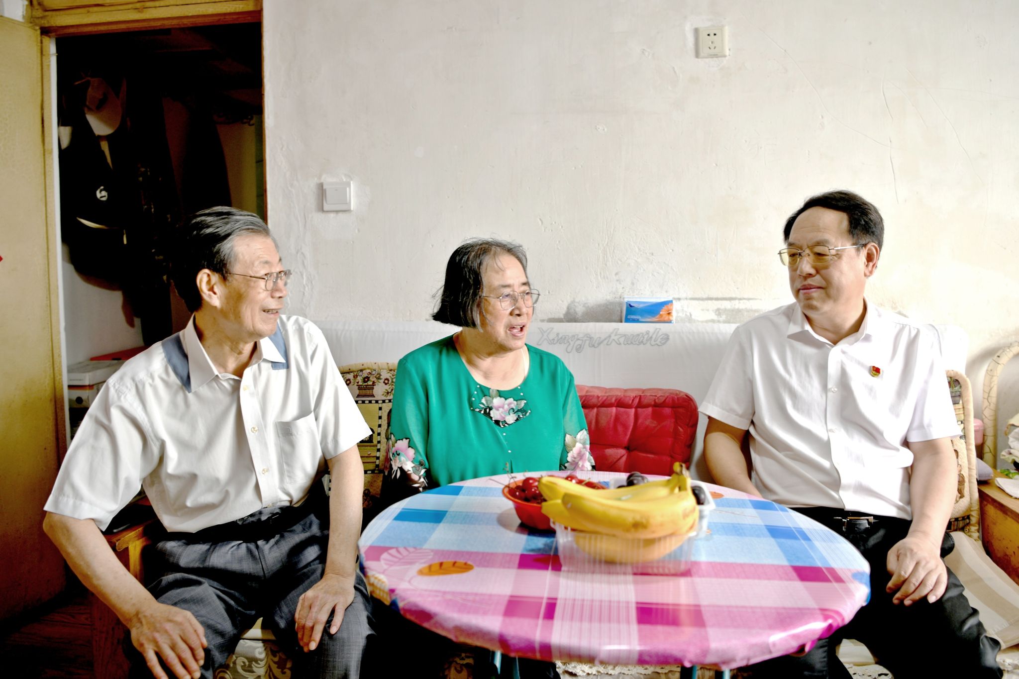 在“光荣在党50年”老党员张文华老师家中,贾玉明为张文华老师颁发并佩戴了“光荣在党50年”纪念章,高度评价了她一直以来为学校党建工作付出的智慧和汗水。贾玉明表示,张文华老师始终忠诚服务于党和学校的教育事业,张敬春老师不仅在学术与行政岗位上建树显著,退休后更是为促进老教授协会“老有所为、老有所乐”做出了重要贡献,两位同志在不同岗位上始终如一地支持着学校发展,他代表学校感谢他们多年来的付出,期待他们继续发挥余热、建言献策。