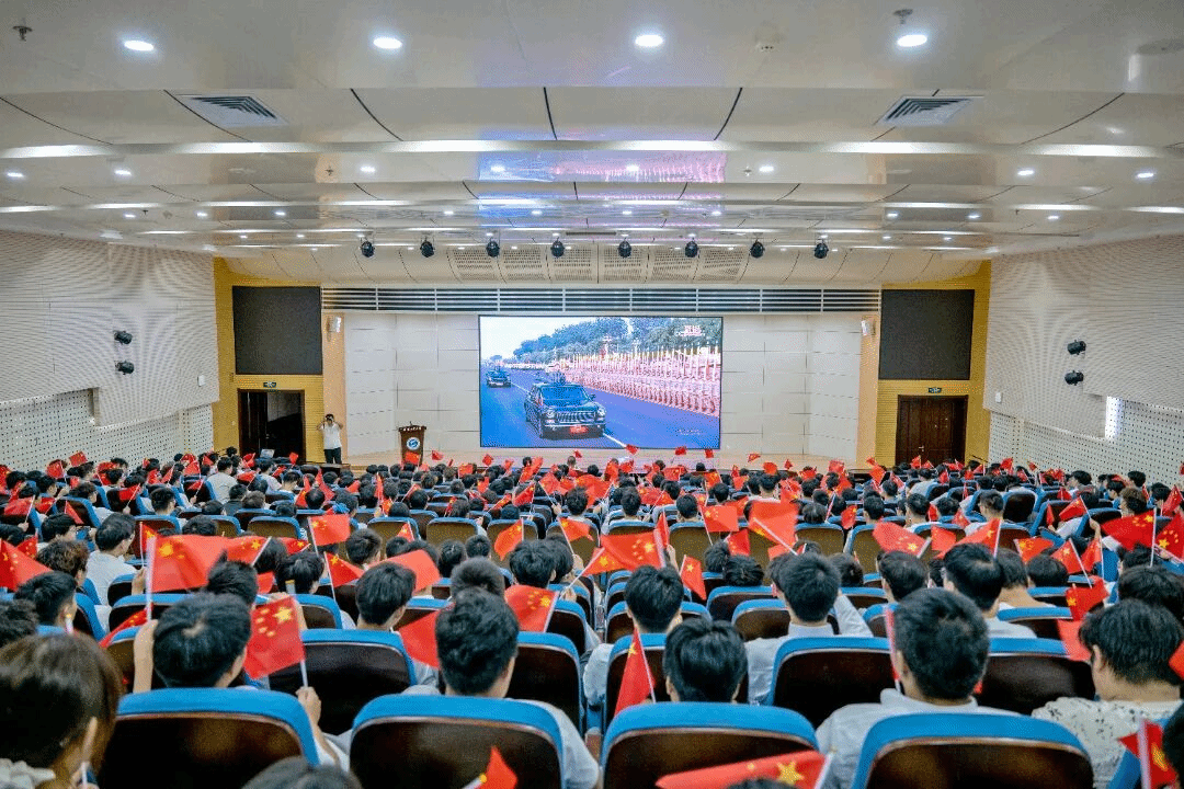 9月3日上午,纪念中国人民抗日战争暨世界反法西斯战争胜利80周年大会在北京天安门广场隆重举行。学校组织全校师生在报告厅、体育馆、教室集中收看大会直播盛况。