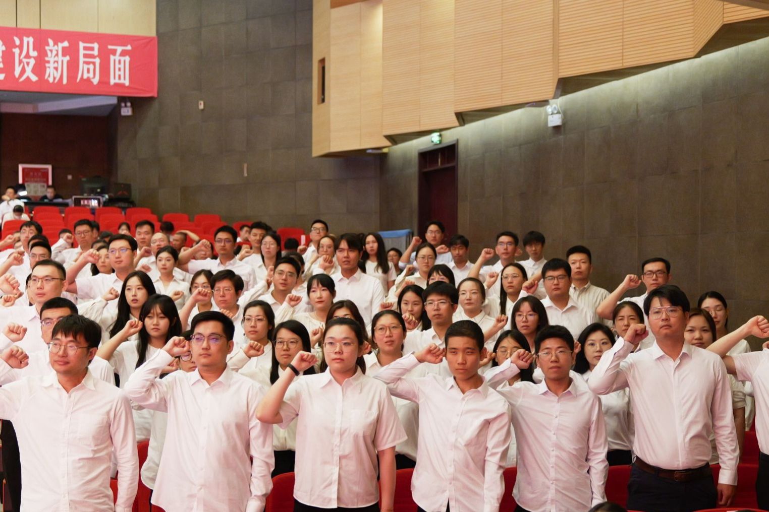 百余位新入职教师在全体师生的共同见证中,右手握拳,立下庄重誓言。他们郑重承诺,将坚守育人初心,勇担教师的光荣使命,深耕立德树人事业,为神圣的教育事业贡献力量。