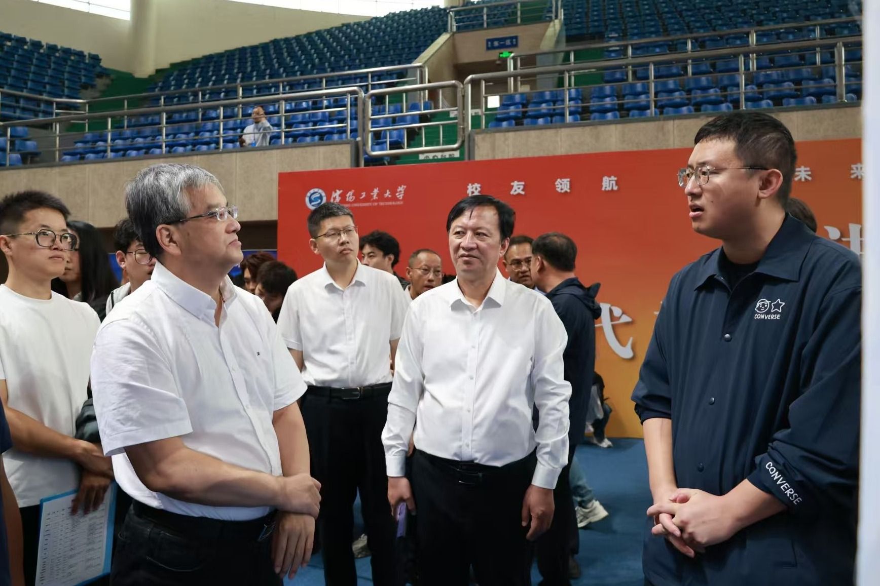 张珂在走访中与用人单位代表及求职学生亲切交谈,详细询问企业招聘需求、岗位能力要求,以及学生求职意向、职业规划等情况。他指出,学校始终将人才培养与就业工作摆在优先位置,本次招聘会在学校76周年校庆日来临之际举办,是学校深化校友联络、深度挖掘并高效利用校友资源的重要举措。他强调,未来学校将进一步打通学校联系校友、开发校友资源的渠道,搭建与校友共同成长的平台,通过深化校企协同育人、强化精准就业指导等举措,全力推动学生实现高质量就业,为社会和企业输送更多高素质人才。