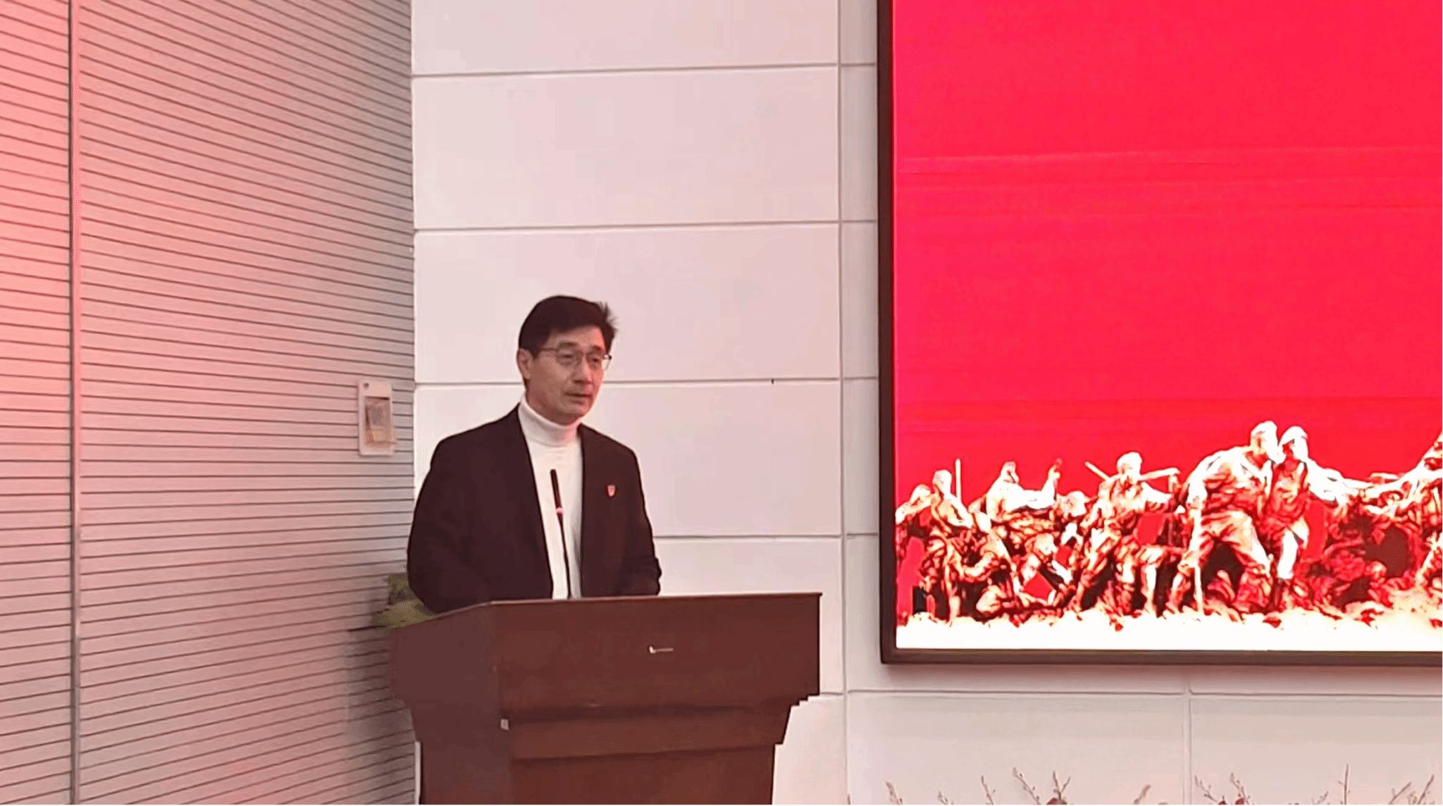 曲弋在仪式中致辞。他首先向沈阳市抗美援朝烈士陵园管理中心对学院的建设发展给予的鼎力支持表示感谢,并向抗美援朝烈士表达无限缅怀和崇高敬意。他表示,此次共建共育教育基地的建立是馆校双方同心同力、共谋发展的生动实践和务实之举,将推动馆校共建持续走深走实、结出更多丰硕成果。他强调,未来学院将充分建设好运用好双方搭建的实践教学平台、联合宣讲平台、合作研究平台、主题教育平台和志愿服务平台,运用好抗美援朝红色资源,引领青年学生传承伟大抗美援朝精神,为中华民族伟大复兴奋勇担当。