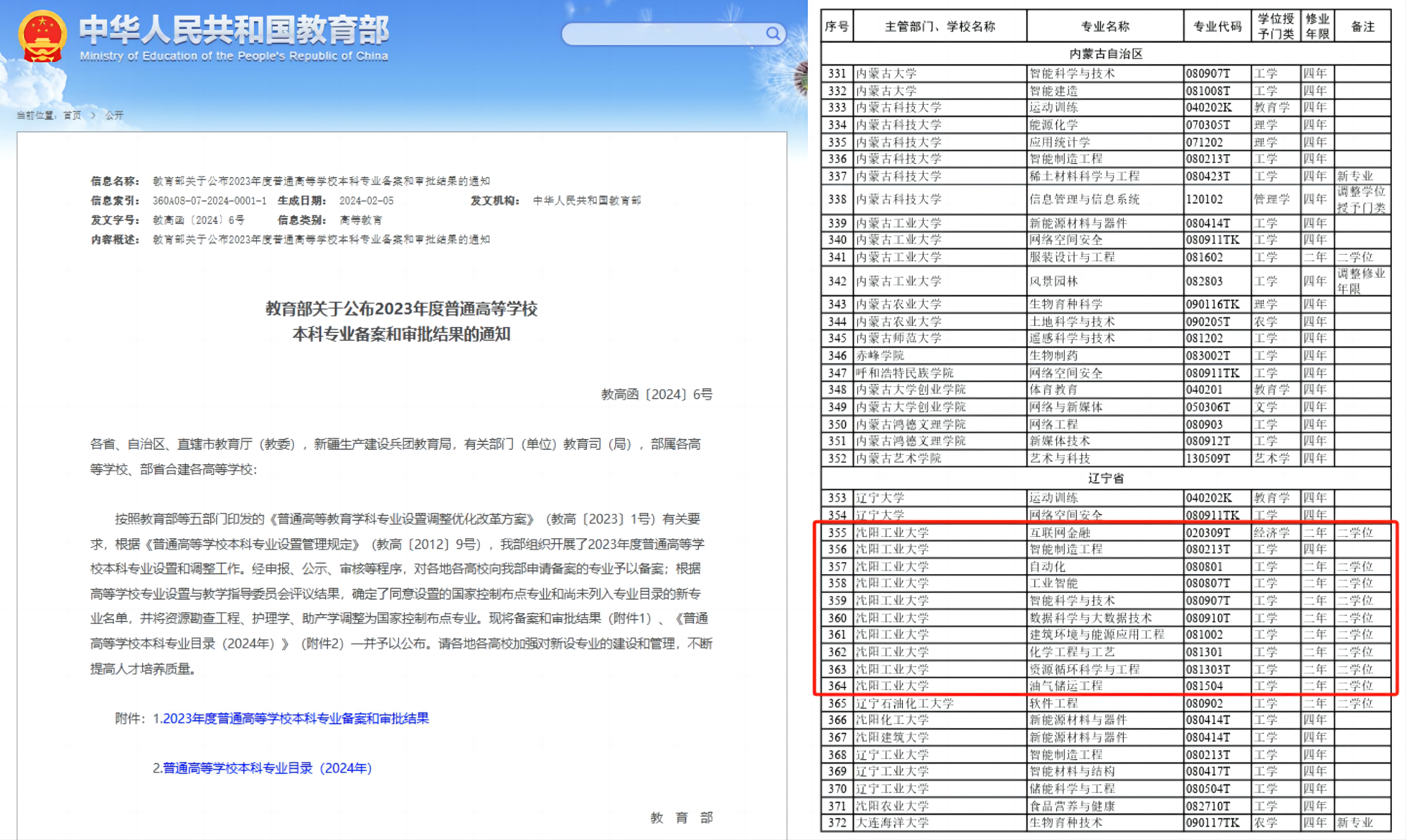 近日,教育部发布《关于公布2023年度普通高等学校本科专业备案和审批结果的通知》(教高函〔2024〕6号),我校增设智能制造工程新工科本科专业,新增9个第二学士学位专业,分别是互联网金融、自动化、工业智能、智能科学与技术、数据科学与大数据技术、建筑环境与能源应用工程、化学工程与工艺、资源循环科学与工程、油气储运工程。