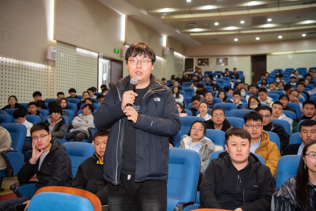 在互动环节,师生们踊跃提问,娄延春研究员就师生关心的科研攻关、材料专业就业及学业规划等问题进行耐心解答。他希望同学们主动践行“自强 笃行”的工大校训,在材料领域面向国家战略需求及行业发展,勇挑大国重器使命担当。现场气氛活跃,师生们表示受益匪浅。