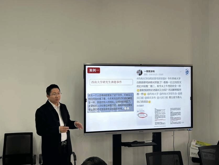 报告会邀请文法学院副教授、学校法律事务中心法律顾问温勇进行讲授。温勇以“依法从教 立德树人”为题,通过讲解分析教育领域中5个典型案例,让教师们进一步了解“什么是依法从教”、“为什么要依法从教”、“师德建设永远在路上”,掌握日常教育实践中防范法律风险知识,提升教师保护学校、学生和自身的权益的意识和能力。
