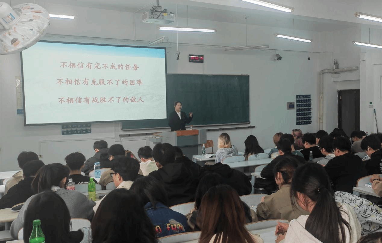 为深入学习贯彻习近平新时代中国特色社会主义思想,全面实施时代新人铸魂工程,充分发挥“大思政课”实践教学基地育人功能,创新思想政治理论课教育教学形式,4月16日下午,马克思主义学院邀请沈阳抗美援朝烈士陵园纪念馆讲解员、“红色宣讲团”成员赵欣彤、范晓广走入我校思政课堂,为学生们带来了一堂生动鲜活的“思政课”。