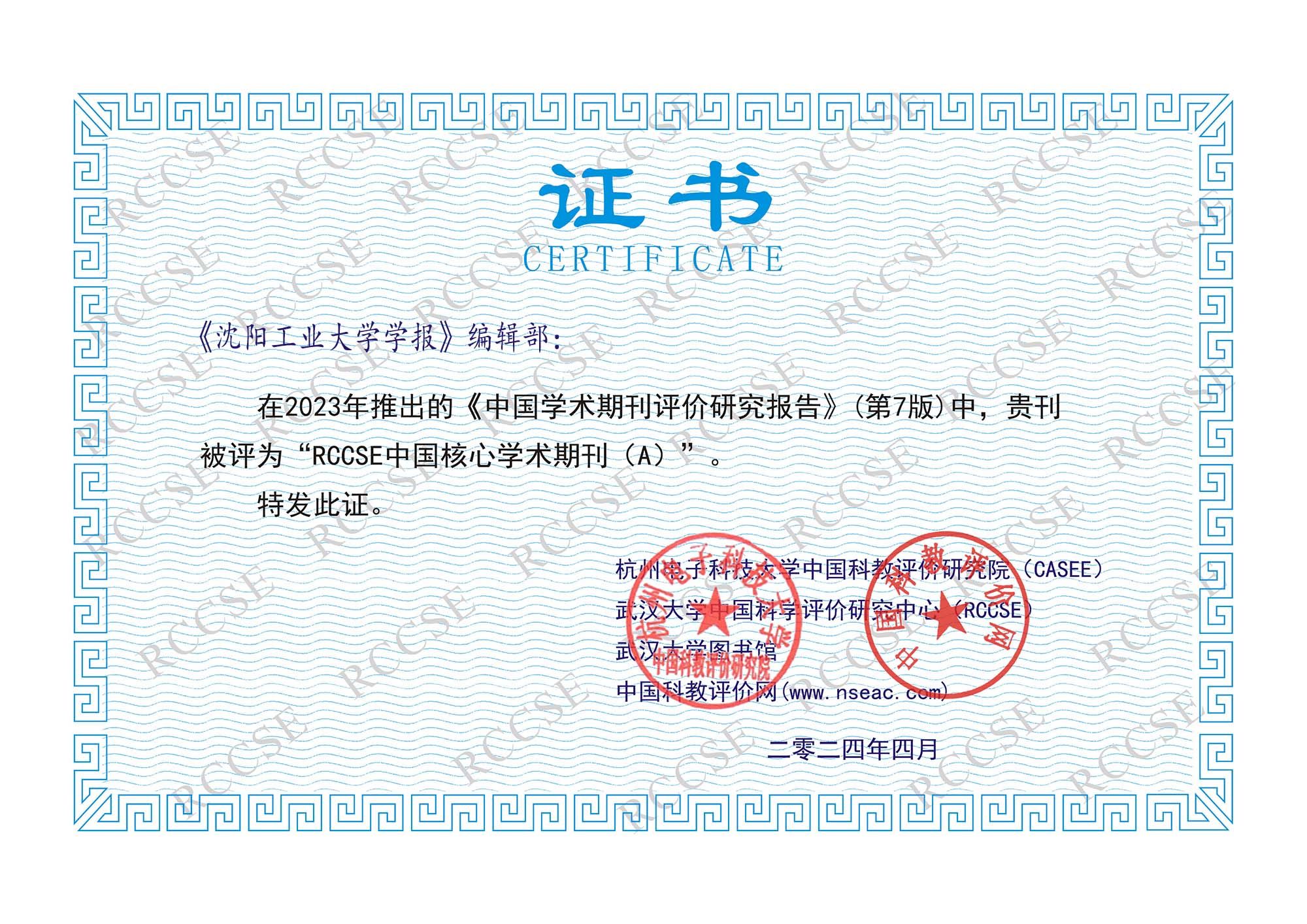 本次评价由中国科学评价研究中心(RCCSE)组织实施,参评期刊共6622种,是继2008年以来的第7次评价。《江南娱乐学报》在所属的“工程与技术综合”类215种期刊中居第29位,为A等;《江南娱乐学报(社科版)》在所属的“社会科学综合”类307种期刊中居第92位,为A-等。