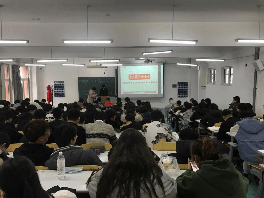 一、组织开展“聚力党员教师领学共进,党的十九届六中全会课间速读”行动,努力做到学习党的十九届六中全会精神全覆盖。组织全体党员教师利用课堂间隙,以PPT、短视频等形式宣讲全会精神,带领3000学子学习党的十九届六中全会有关内容。此外,导师和辅导员利用研究生例会、课题讨论和班团会等集体活动,对学生开展专题辅导,师生齐学共进,励志铸魂,引导激励广大师生勿忘昨天苦难辉煌,无愧今天的使命担当,不负明天的伟大梦想。