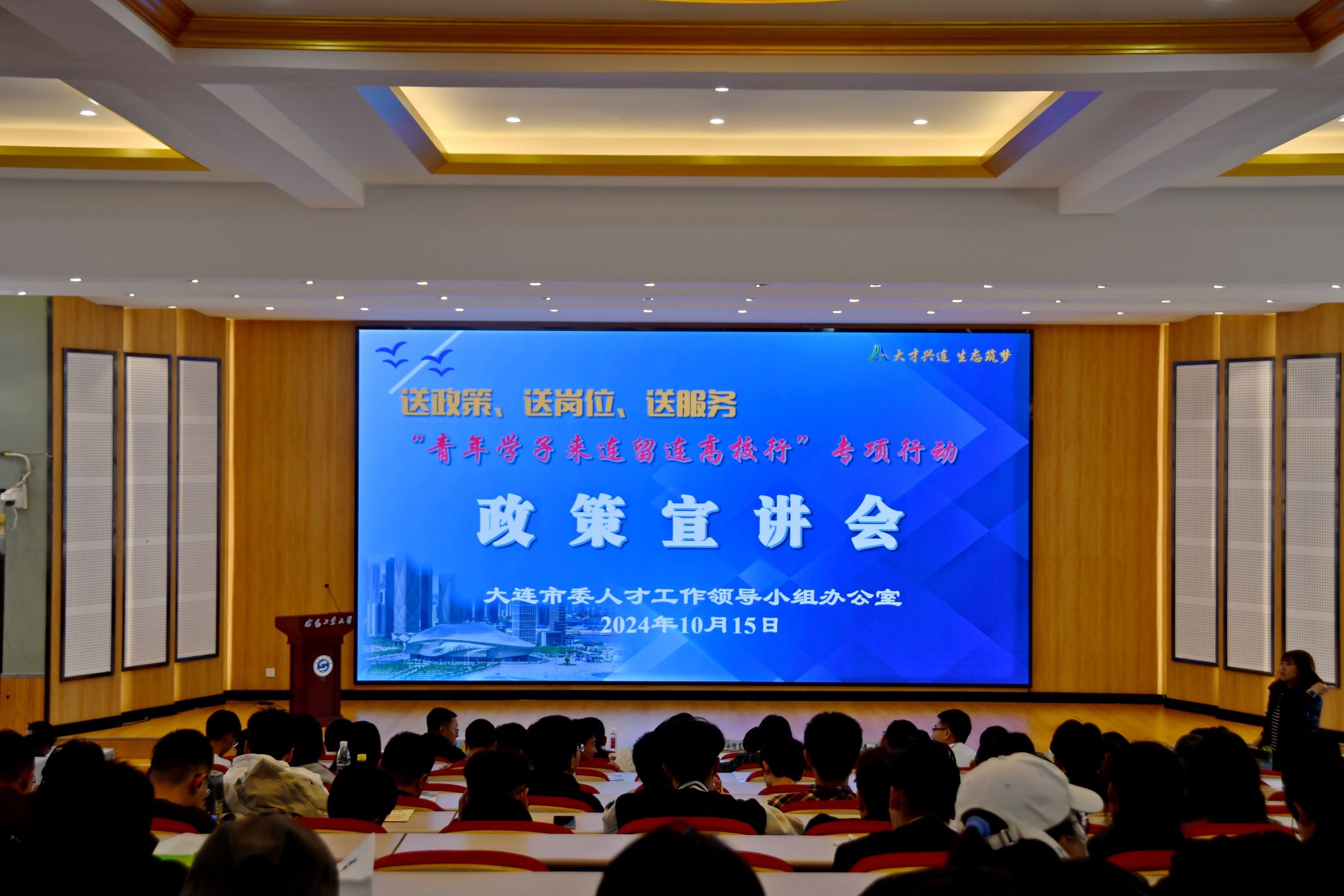 10月15日下午,学校在教学楼E301举办大连市人才政策环境宣讲会。大连市国资委主任孙国友、旅顺口区区组织部主任于登超,以及大连市有关企业负责人出席会议。学校研究生院院长曲迎东、招生就业处以及200余名师生代表参加活动。