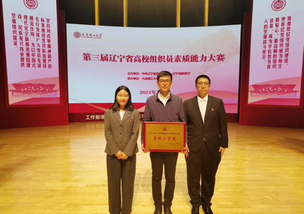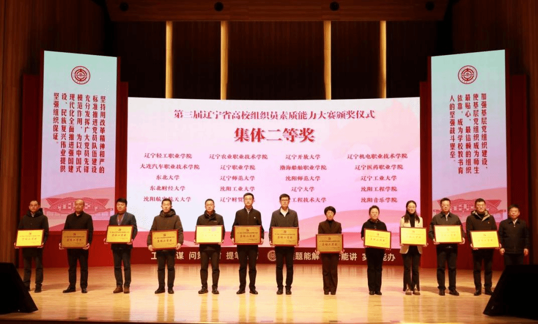 12月6日至8日,由中共辽宁省委教育工委、辽宁省教育厅主办的第三届辽宁省高校组织员能力素质大赛在大连理工大学举行。我校由李丹璐、佟以轩两位老师组成的参赛队表现优异,获得集体二等奖,两名选手分获个人三等奖。