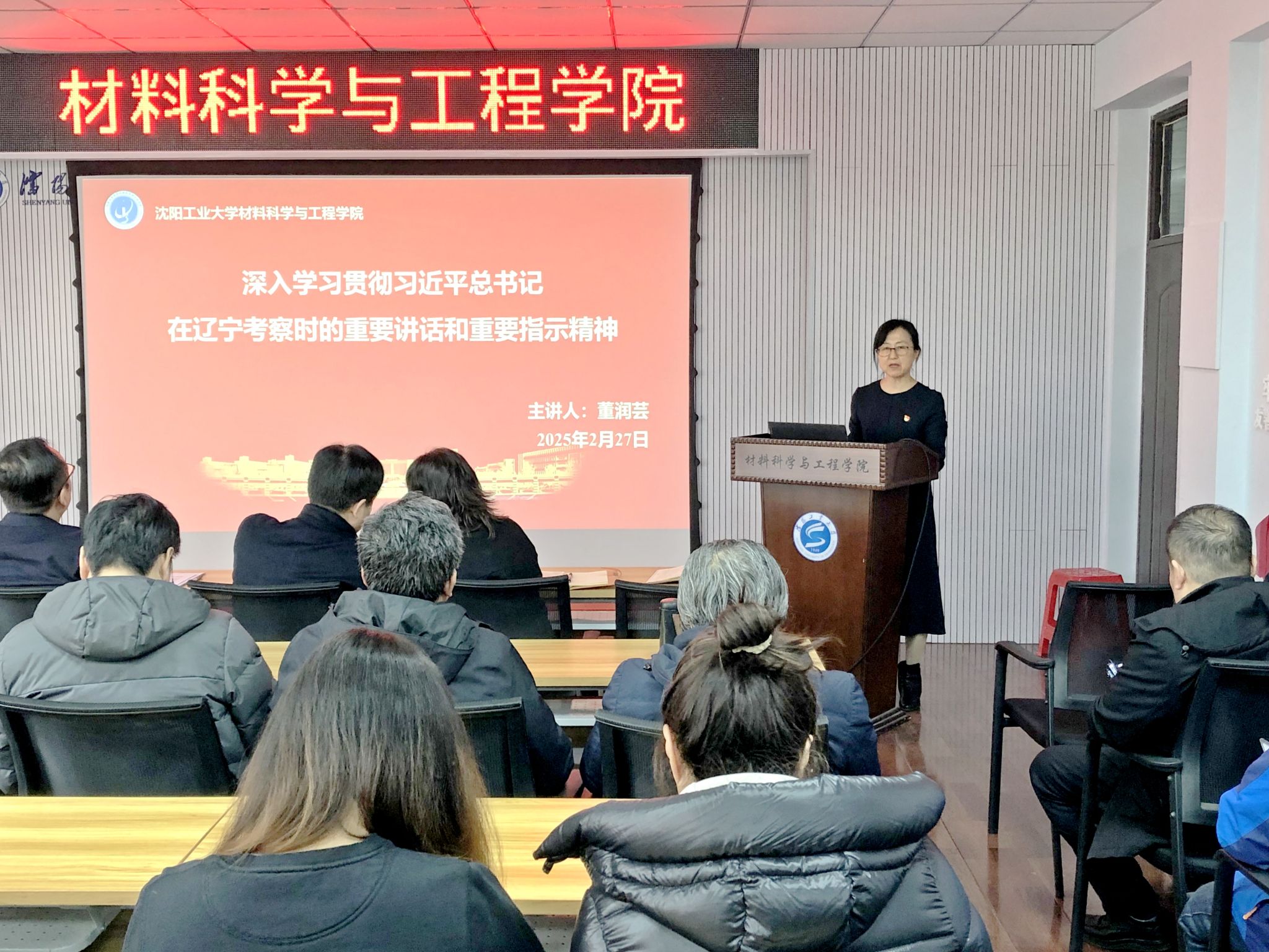 董润芸在会议上领学了习近平总书记在辽宁考察时的重要讲话和重要指示精神。她结合学院发展,就贯彻落实好讲话精神提出了相关要求:一是深刻认识辽宁全面振兴新突破三年行动攻坚之年取得的成就,坚决贯彻落实党中央决策部署,完整准确全面贯彻新发展理念,坚持“干”字当头、奋勇争先。二是深刻理解辽宁全面振兴的独特优势,必须把习近平总书记的重要讲话和重要指示精神转化为再接再厉、乘势而上的信心和力量。三是深刻把握发展机遇推动辽宁全面振兴,激发广大干部群众改革创新、振兴发展的激情和斗志。