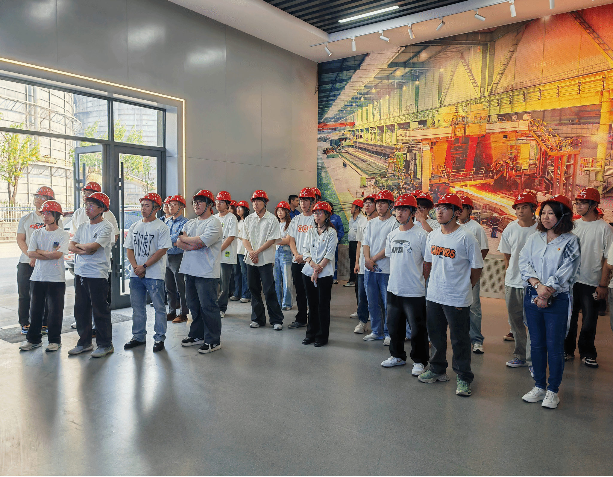 在热连轧厂,讲解员不仅介绍了热连轧厂的发展历程,还详细讲解了炼钢系统的工作流程,使学生们充分感受到钢液成分调整与轧制工艺的联动。在轧钢车间,师生们目睹了1600℃钢水在轧机中奔涌的震撼场景。管理学院学生刘子豪感慨:“从老一辈肩扛手抬到如今的智能智造,本钢人用行动诠释了钢铁是怎样炼成的。”
