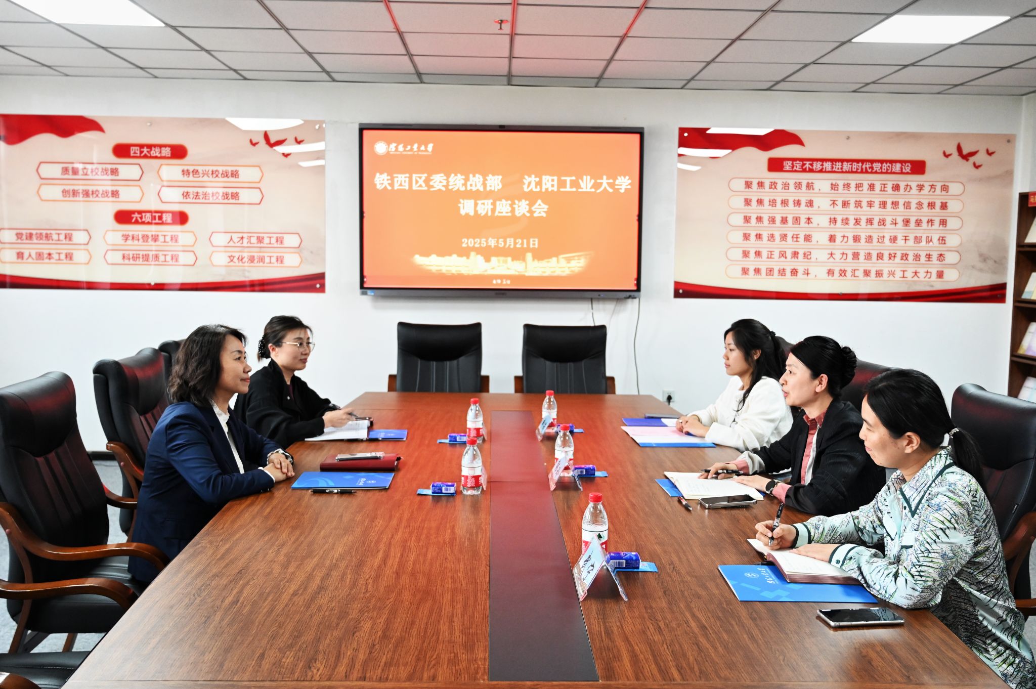 5月21日下午,铁西区委统战部分管日常工作的副部长谢光华一行来我校调研座谈。学校党委统战部部长郭玲、统战部同志参加会议,铁西区委统战部办公室主任于洋陪同调研。