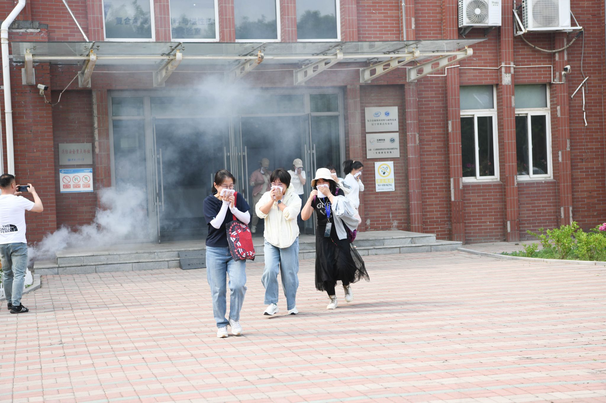 公安处李东来开展专题讲座,环境与化学工程学院副院长张林楠主持活动。讲座围绕高校实验室、教学楼等场景的火灾隐患,系统讲解初期火情处置、逃生避险要领及消防器材使用方法,结合近年高校典型火灾案例剖析电气线路老化、易燃化学品管理等风险防范要点。14时40分,全体人员转场至理学院楼开展应急疏散演练。随着理学院副院长刘忠菊宣布演练开始,楼内模拟释放烟雾并拉响警报,教职工在公安处教师、保安及保洁人员的引导下,依据预先发放的疏散路线图,分楼层采取直立快跑或弯腰捂口鼻动作有序撤离,5分钟内全部抵达正门前集合点。校医院2名医务人员全程值守,两院办公室主任现场清点确认无人员滞留后,公安处负责人对演练效果进行专业点评。