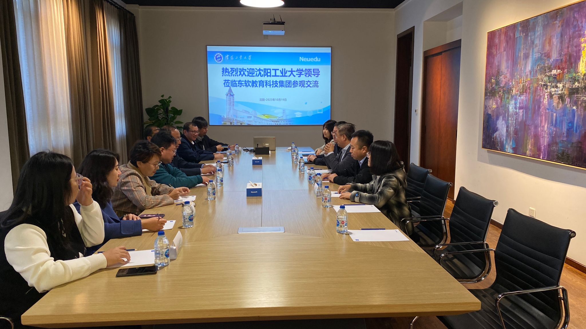 李印杲对学校一行的到来表示热烈的欢迎。他介绍了东软教育科技集团产业发展情况及教育积淀,希望双方持续深入推进产教融合合作,不断创新人才培养模式,树立示范性软件学院合作标杆,为服务地方经济等方面做出贡献。企业相关负责人从教学管理、学生管理、就业推荐等方面介绍了软件学院校企专业共建项目的具体实施情况,并期待携手学院共同培养高素质创新应用型人才。