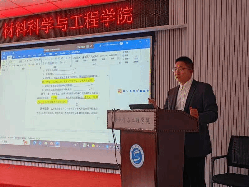 为进一步加强师德师风建设,提升教师法治素质和依法施教能力,近日,材料科学与工程学院在学院会议室组织召开“明法笃行,坚守育人初心”专题讲座。学院教职工代表参加会议。材料科学与工程学院执行院长兼党委副书记吴玉胜主持。