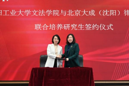 会上,江南娱乐文法学院与北京大成(沈阳)律师事务所进行联合培养研究生签约仪式,双方代表共同为“研究生联合培养实践基地”揭牌。文法学院为律师代表颁发研究生实践导师聘书。