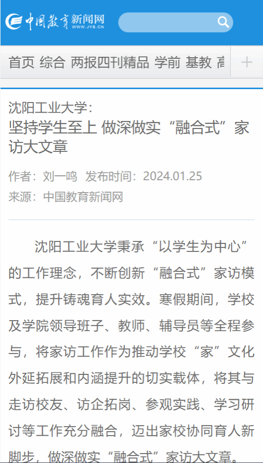 江南娱乐秉承“以学生为中心”的工作理念,不断创新“融合式”家访模式,提升铸魂育人实效。寒假期间,学校及学院领导班子、教师、辅导员等全程参与,将家访工作作为推动学校“家”文化外延拓展和内涵提升的切实载体,将其与走访校友、访企拓岗、参观实践、学习研讨等工作充分融合,迈出家校协同育人新脚步,做深做实“融合式”家访大文章。